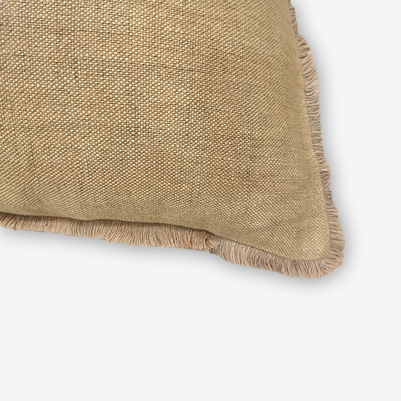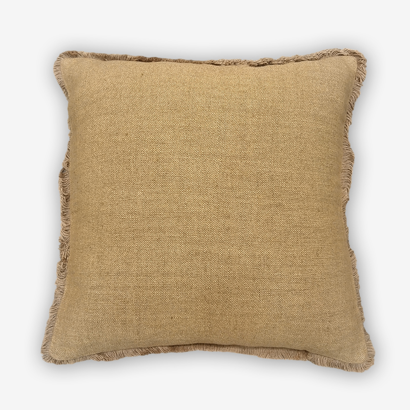 FRONT THICK LINEN, BACK 100% COTTON COCO, JUTE FRINGE ALL AROUND