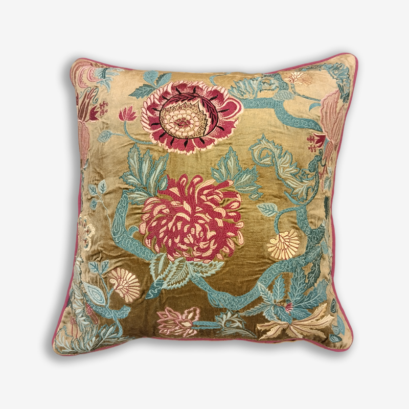 FRONT & BACK VISCOSE VELVET, MACHINE EMBROIDERY, COTTON SHEETING CORD PIPING ALL AROUND
