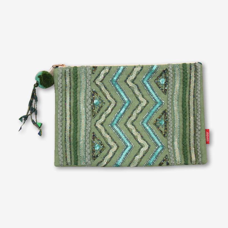Size : 20X30 CM POUCH ON COTTON COCO, WITH COTTON SHEETING LINING, RUBBER STIFFNER , HAND THREAD EMBROIDERY, WITH FANCY TASSEL ON ZIPPER