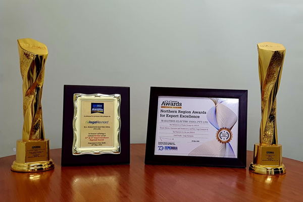 The RRX team in Faridabad achieved a significant milestone by receiving two prestigious Golden Trophies. These awards were for the Star Performer in Product Group for Electric Motors, Generators, and Transformers during the 2019-2020 period, as well as for the Top Exporters in 2020-2021, where they secured the GOLD Trophy in the Large Enterprise category. These recognitions were presented by the Chief Minister of Delhi, Mrs. Rekha Gupta, during a ceremony organised by the Engineering Export Promotion Council of India's Northern Region.