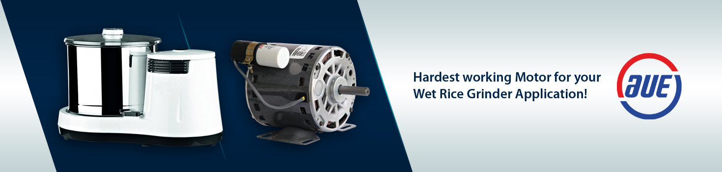 Our proven wet rice grinder & spice grinder motor range of AUE design with high starting torque ability in Fr-30/NEMA Fr-42/ NEMA Frame48/Fr-56 sell across pan-India, particularly the Southern part of it, manufactured with precise controlled parameters to serve the user with apt quality of batter & spices.